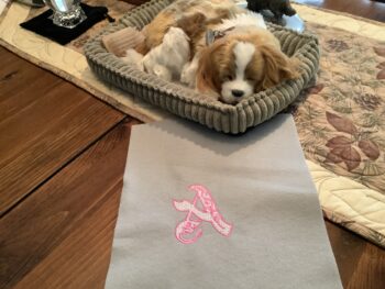 Thank you for introducing your thoughts on the Lace Alpha.  As I watched the stitch out of letter A, I was impressed by detail used in this design and the beauty of the finished design.  I used medium tear away stabilizer in my hoop and floated the top layer material.  For the first colour (white) I slowed my machine to 700 spm,  the second colour (pink) I reduced the speed to 500 spm.  There were no thread breaks or broken needles.  Amazing, I wish all my embroideries were as hassle free as this one.